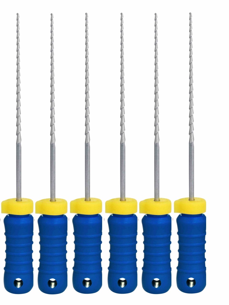 Ручной режущий стоматологический эндодонтический инструмент со спиральной нарезкой рабочей части. Материал рабочей режущей части - нержавеющая сталь, материал рукоятки – пластик (полибутилентерефталат).
