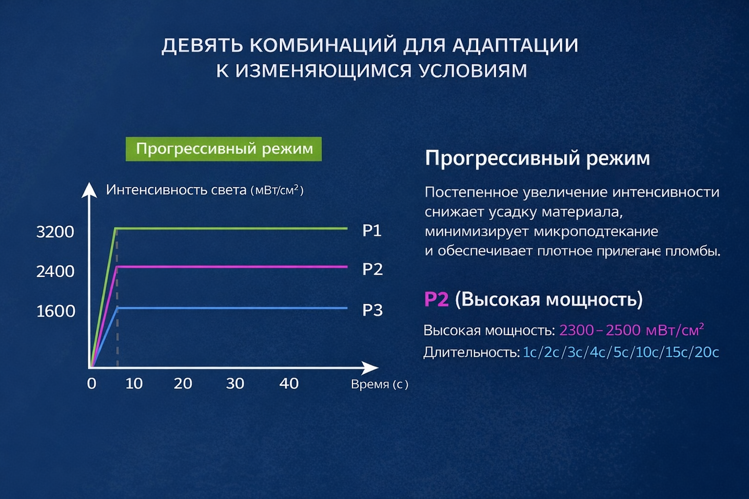 - 3 магнитные насадки для точечной полимеризации в комплекте.